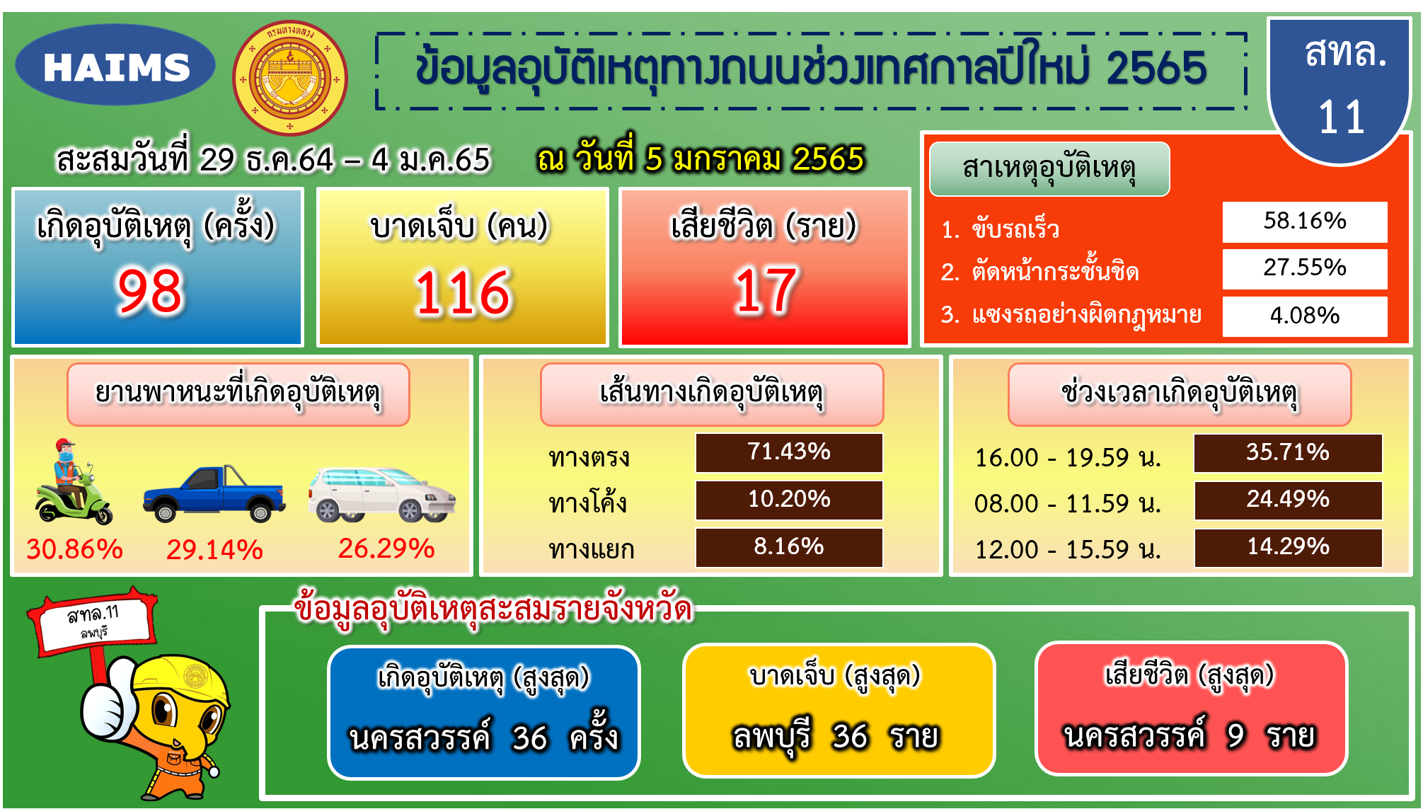 สถิติอุบัติเหตุช่วงเทศกาลปีใหม่ 2565