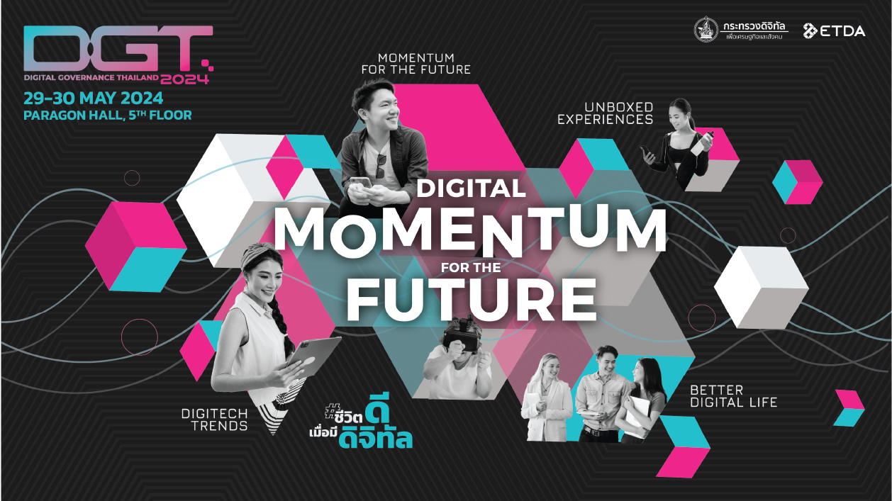 34 29/04/2567 กลับมาอีกครั้ง ! กับงาน Digital Governance Thailand 2024 ครั้งที่ 2 (DGT 2024) ภายใต้แนวคิด “Digital Momentum for the Future” จัดขึ้นระหว่าง วันที่ 29-30 พฤษภาคม 2567 ณ รอยัล พารากอน ฮอลล์ ชั้น 5 สยามพารากอน