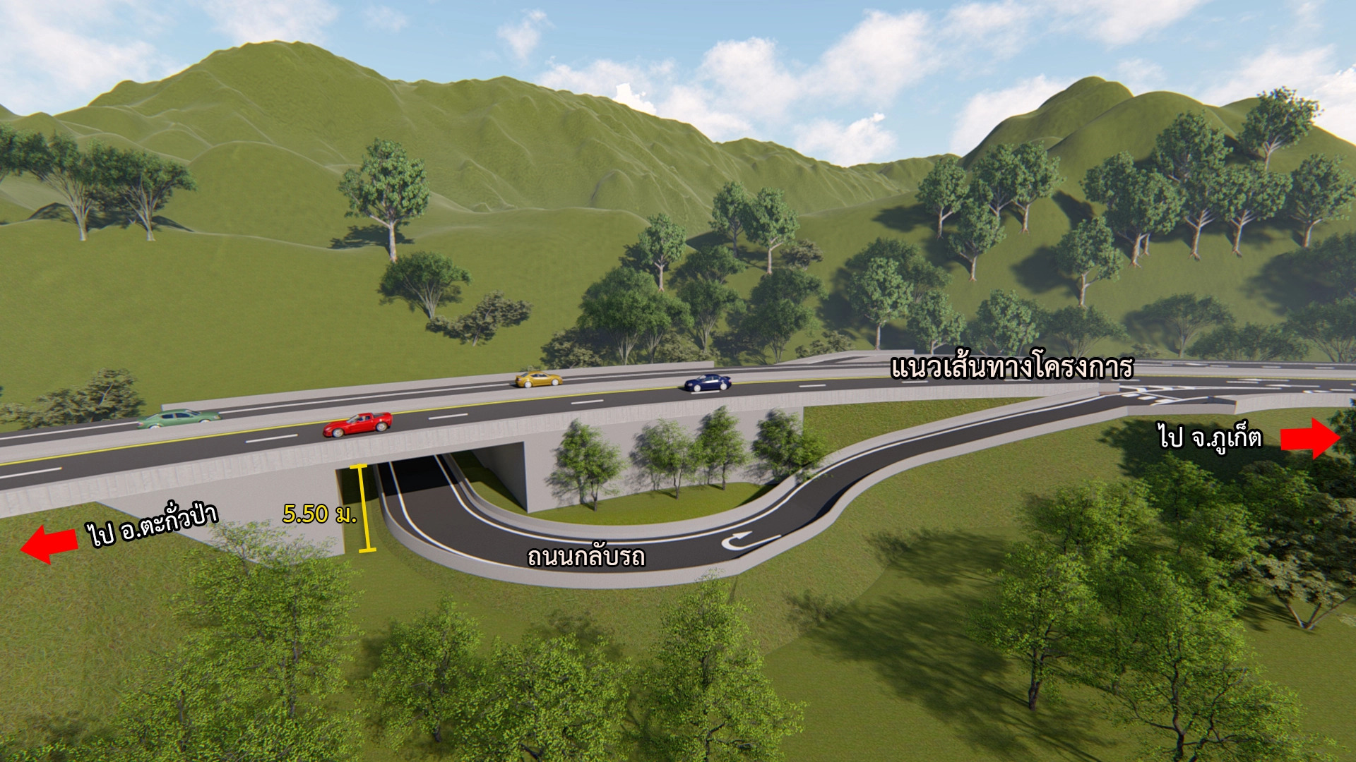 3. รูปแบบจุดกลับรถใต้สะพานข้าม กม.801+599.000 คลองเขาหลัก ความสูงช่องลอด 2 เมตร นอกจากนี้บริเวณบ้านบางหลาโอนได้ออกแบบทางลอดคนเดินให้นักท่องเที่ยว