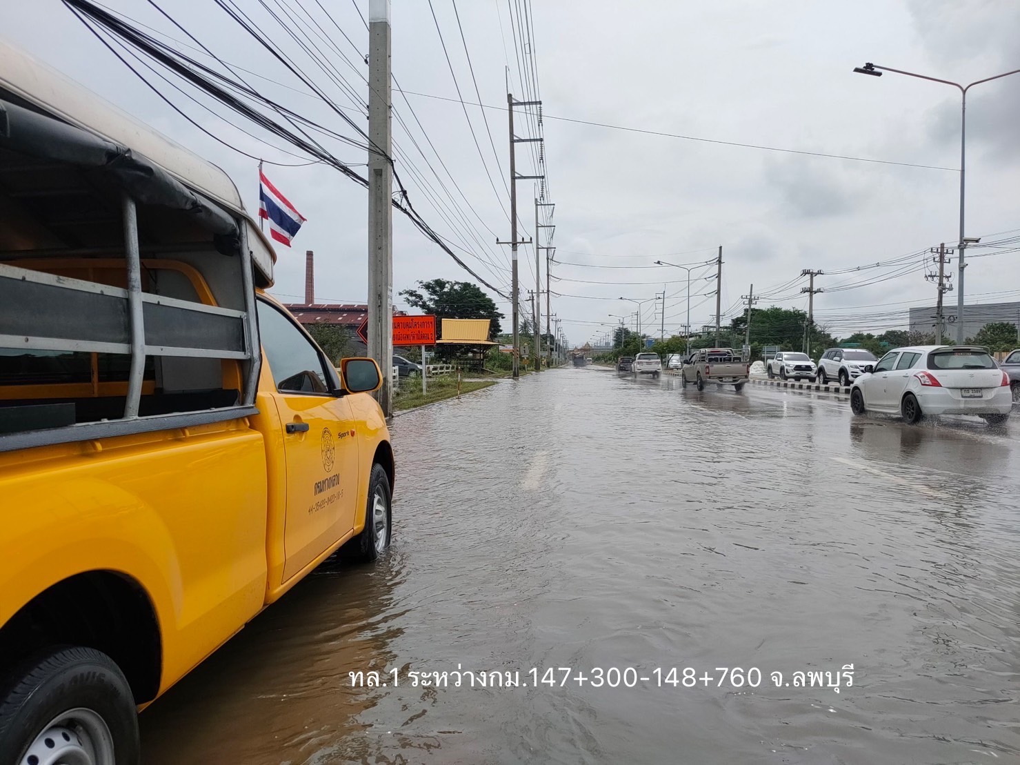 - ทางหลวงหมายเลข 33 ตอน นาคู – ป่าโมก ในพื้นที่ อ.ป่าโมก ช่วง กม.ที่ 36+000 – 36+200 ระดับน้ำนอกคันกันดิน 80 ซม. ท่วมผิวจราจร 10 ซม.