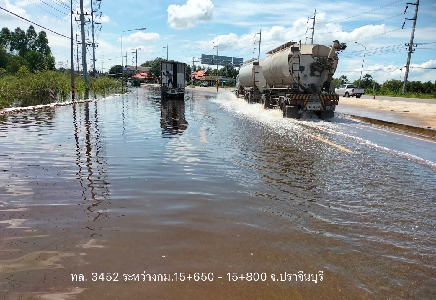 - ทางหลวงหมายเลข 226 ตอน ห้วยขะยุง – วารินชำราบ ในพื้นที่ อ.วารินชำราบ ช่วง กม.ที่ 319+600 – 320+200 ระดับน้ำ 120 ซม.