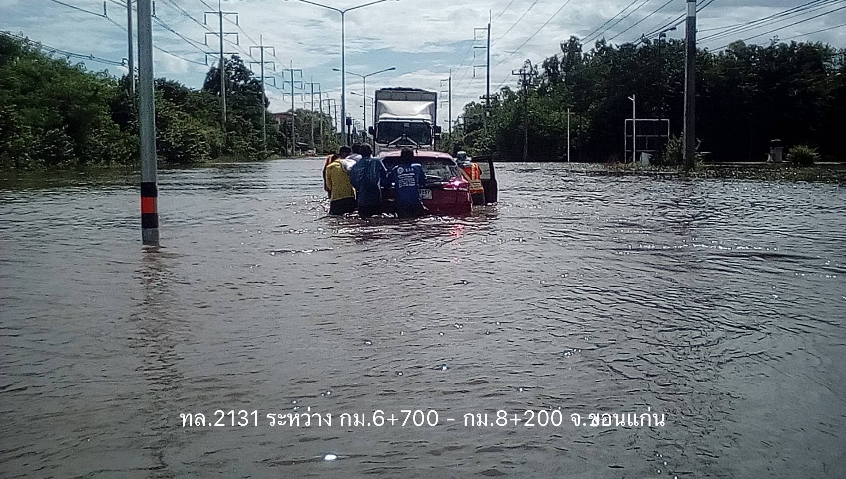 - ทางหลวงหมายเลข 2065 พล – ลำชี ในพื้นที่ อ.พล ช่วง กม.ที่ 33+150 – 34+000 ระดับน้ำ 35 ซม. การจราจรไม่สามารถผ่านได้ ให้ใช้เส้นทางเลี่ยงท้องถิ่นแทน