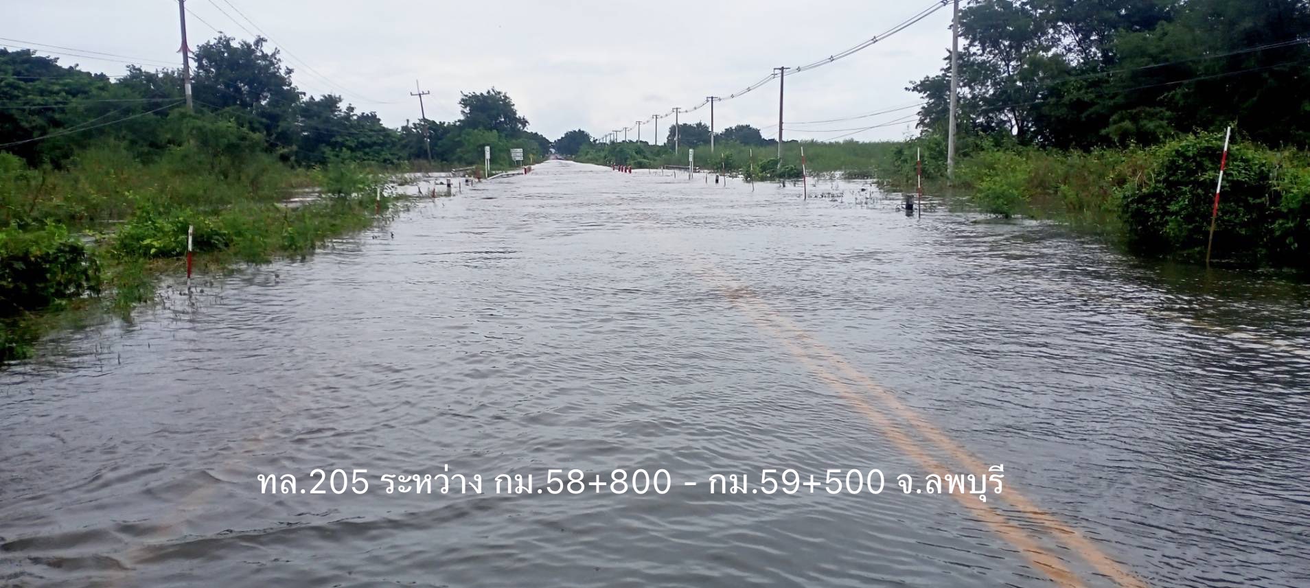 - ทางหลวงหมายเลข 205 ม่วงค่อม - คลองห้วยไผ่ ในพื้นที่ อ.ชัยบาดาล ช่วง กม.ที่ 58+900 – 59+500 ระดับน้ำ 35 ซม. การจราจรไม่สามารถผ่านได้ ให้ใช้ทางเลี่ยงท้องถิ่นแทน