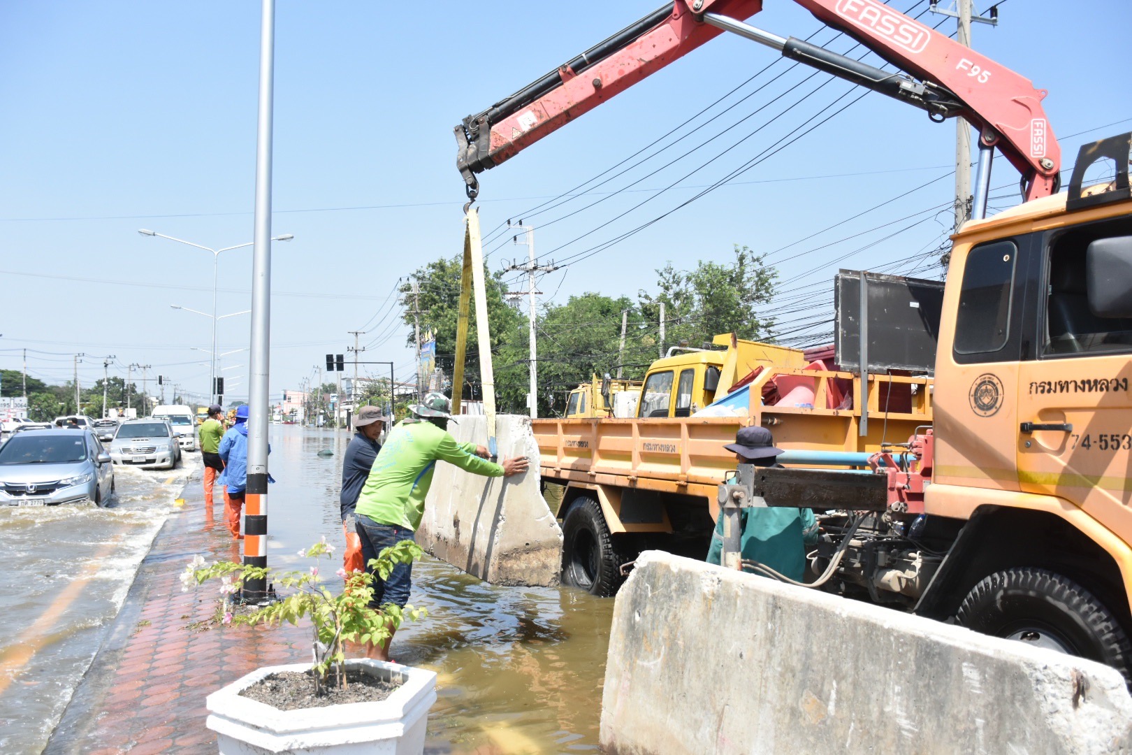 นายสราวุธ ทรงศิวิไล อธิบดีกรมทางหลวง เปิดเผยว่า จากสถานการณ์น้ำท่วมในหลายพื้นที่ ส่งผลให้ทางหลวงบางเส้นทางมีน้ำท่วมสูงเป็นเหตุให้ไม่สามารถใช้สัญจรได้ตามปกติ กรมทางหลวงได้สั่งการให้ สำนักงานทางหลวง แขวงทางหลวง หมวดทางหลวงทั่วประเทศ ลงพื้นที่ติดตามสถานการณ์น้ำท่วม อย่างใกล้ชิด แขวงทางหลวงอ่างทองได้มีการติดตั้งอุปกรณ์สิ่งอำนวยความปลอดภัยเพื่อชะลอน้ำไหลผ่าน ให้รถเล็กได้อย่างปลอดภัยบนทางหลวงหมายเลข 3064 ตอน อ่างทอง – ปากดง ระหว่าง กม.4+400 – 9+150 และมีรถบริการ รับ – ส่ง ประชาชน โดยรถจะออกจากโรงพยาบาลโพธิ์ทอง ผ่านสามแยกไฟแดงป่างิ้ว เข้าตัวเมืองอ่างทอง ผ่านหน้าศาลากลางอ่างทอง ผ่านหน้าโรงพยาบาลอ่างทอง แล้ววนกลับเส้นทางเดิม ตั้งแต่เวลา 09.00 น. – 18.00 น. ด้านแขวงทางหลวงกาฬสินธุ์ ได้ให้การสนับสนุนรถเพื่อส่งมอบอาหารให้แก่ผู้ประสบภัยน้ำท่วมในพื้นที่บ้านโนนแดง ตำบลฆ้องชัยพัฒนา อำเภอฆ้องชัย จังหวัดกาฬสินธุ์ ในขณะที่แขวงทางหลวงศรีสะเกษที่ 1 ได้จัดกำลังเจ้าหน้าที่บริการประชาชนลงเรือข้ามฟาก ในพื้นที่ จ.ศรีสะเกษ หากพื้นที่ใดประสบปัญหาก็จะระดมบุคลากร นำเครื่องจักรและวัสดุอุปกรณ์เข้าให้การช่วยเหลือเพื่อเร่งระบายน้ำ ป้องกันเส้นทางไม่ให้เกิดทางขาดอย่างเต็มที่ สำหรับเส้นทางที่น้ำลดแล้วได้มีการสำรวจความเสียหายของ ถนน สะพาน และระบบระบายน้ำ เพื่อบรรเทาความเดือดร้อนของประชาชนให้ได้รับความสะดวกปลอดภัยในการสัญจรโดยเร็วที่สุดอย่างต่อเนื่อง ตามข้อสั่งการของ นายศักดิ์สยาม ชิดชอบ รัฐมนตรีว่าการกระทรวงคมนาคม ที่มีความห่วงใยประชาชนผู้ประสบภัยในครั้งนี้ พร้อมทั้งเฝ้าระวังตลอด 24 ชั่วโมง