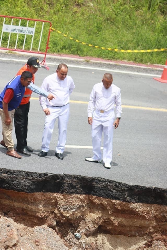 โดยวันนี้ (23 ต.ค. 65) ได้มอบหมายให้ นายยุทธนา พิทักษ์ ผู้อำนวยการแขวงทางหลวงภูเก็ต ร่วมประชุมติดตามความคืบหน้าการแก้ไขปัญหาและซ่อมแซมทางหลวงดังกล่าวร่วมกับหน่วยงานที่รับผิดชอบในจังหวัดภูเก็ต โดยแขวงทางหลวงภูเก็ตดำเนินการใช้โดรนบินสำรวจความเสียหายและรวบรวมข้อมูล สำหรับดำเนินการออกแบบและประเมินราคาการซ่อมแซมถนนชั่วคราว ในวงเงินงบประมาณ 4.9 ล้านบาท ด้วยการใช้ระบบตอกเสาเข็ม พร้อมสร้างกำแพงเป็นแนวกั้น ซึ่งจะใช้งบประมาณแก้ปัญหาภัยพิบัติฉุกเฉินของสำนักงานป้องกันและบรรเทาสาธารณภัย โดยสำนักงานป้องกันและบรรเทาสาธารณภัยจังหวัดภูเก็ตจะร่วมกับแขวงทางหลวงภูเก็ตดำเนินการจัดทำเอกสารเพื่อให้ผู้ว่าราชการจังหวัดภูเก็ตลงนามอนุมัติโครงการภายในวันนี้ จากนั้นจะเร่งดำเนินการหาผู้รับจ้างเพื่อเข้าสู่กระบวนการซ่อมแซมต่อไป สำหรับการแก้ปัญหาแบบถาวร เทศบาลเมืองกะทู้ได้เตรียมงบประมาณในการดำเนินการจำนวน 17 ล้านบาท โดยแขวงทางหลวงภูเก็ตจะยังคงรับหน้าที่ในการออกแบบสำหรับการซ่อมแซมปรับปรุงถนนตามหลักวิศวกรรมโยธา เพื่อให้มีความแข็งแรงปลอดภัยอย่างสูงสุด โดยเมื่อดำเนินการซ่อมแซมแบบชั่วคราวเพื่อให้การจราจรผ่านได้แล้วเสร็จ จะดำเนินการแก้ไขปัญหาแบบถาวรทันที ทั้งนี้ ในปัจจุบันห้ามยานพาหนะผ่านโดยเด็ดขาด กรณีประชาชนมีความจำเป็นต้องเดินผ่านเส้นทางบริเวณดังกล่าว จะมีเจ้าหน้าที่ดูแลด้านความปลอดภัย โดยประชาชนจะต้องเดินชิดไหล่ทางเท่านั้น และมีการกำหนดจุดจอดรถและจุดรับส่งทั้งสองฝั่ง และหากมีฝนตกหนักจะดำเนินการห้ามผ่านทางทันที