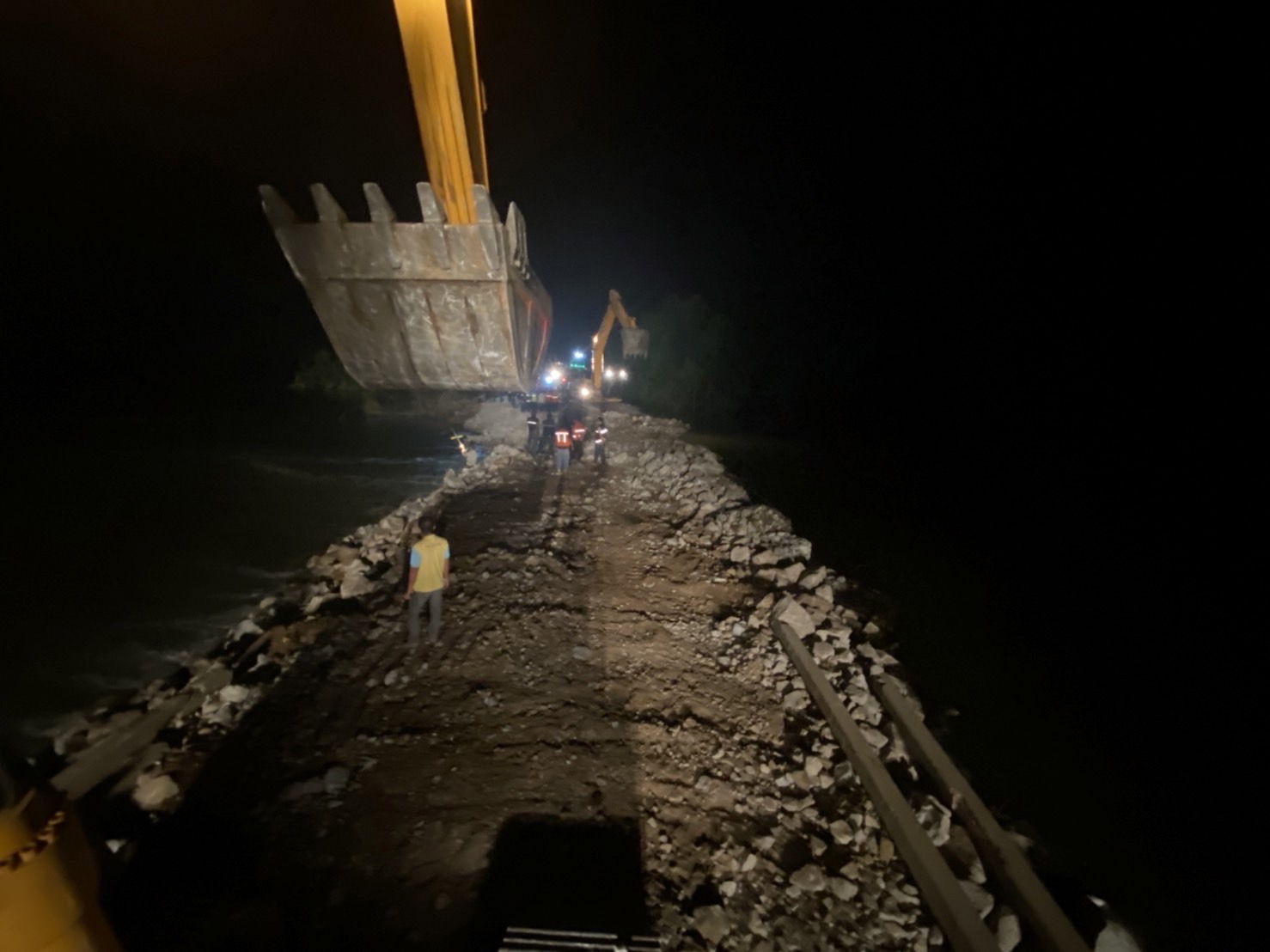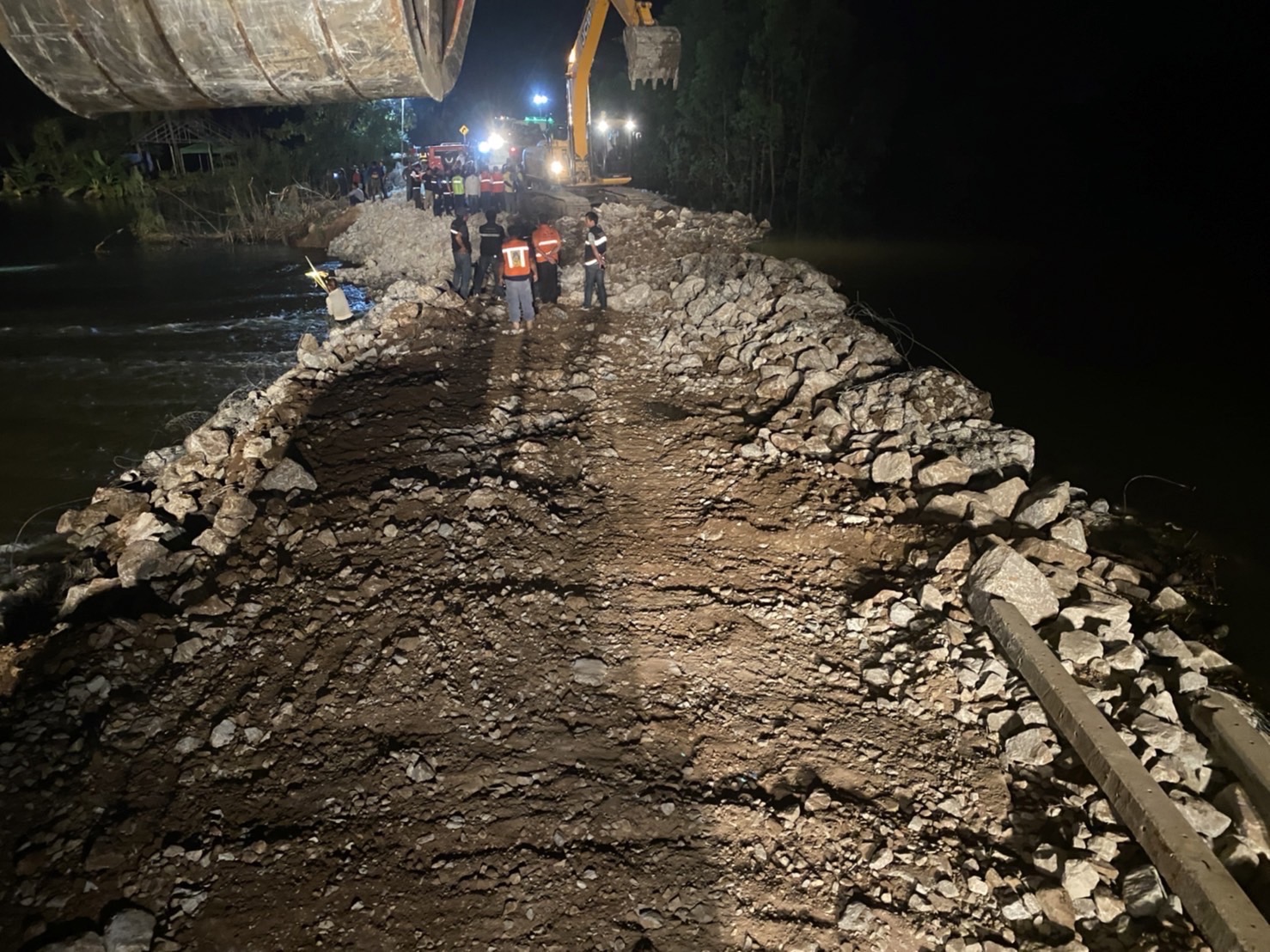 นายสราวุธ ทรงศิวิไล อธิบดีกรมทางหลวง เปิดเผยถึงความคืบหน้าการดำเนินการซ่อมแซมพนังกั้นลำน้ำชี บริเวณบ้านสะดำศรี ต.ลำชี อ.ฆ้องชัย จ.กาฬสินธุ์ ที่ถูกกระแสน้ำกัดเซาะจนขาดเป็นแนวยาวกว่า 50 เมตร ทั้ง 2 ฝั่ง เหตุเกิดตั้งแต่คืนวันที่ 16 ตุลาคมที่ผ่านมา โดยกรมทางหลวงร่วมดำเนินการซ่อมแซมพนังกั้นลำน้ำชีอย่างเร่งด่วน และคาดว่าจะแล้วเสร็จภายในคืนของวันที่ 24 ตุลาคม 2565 นี้