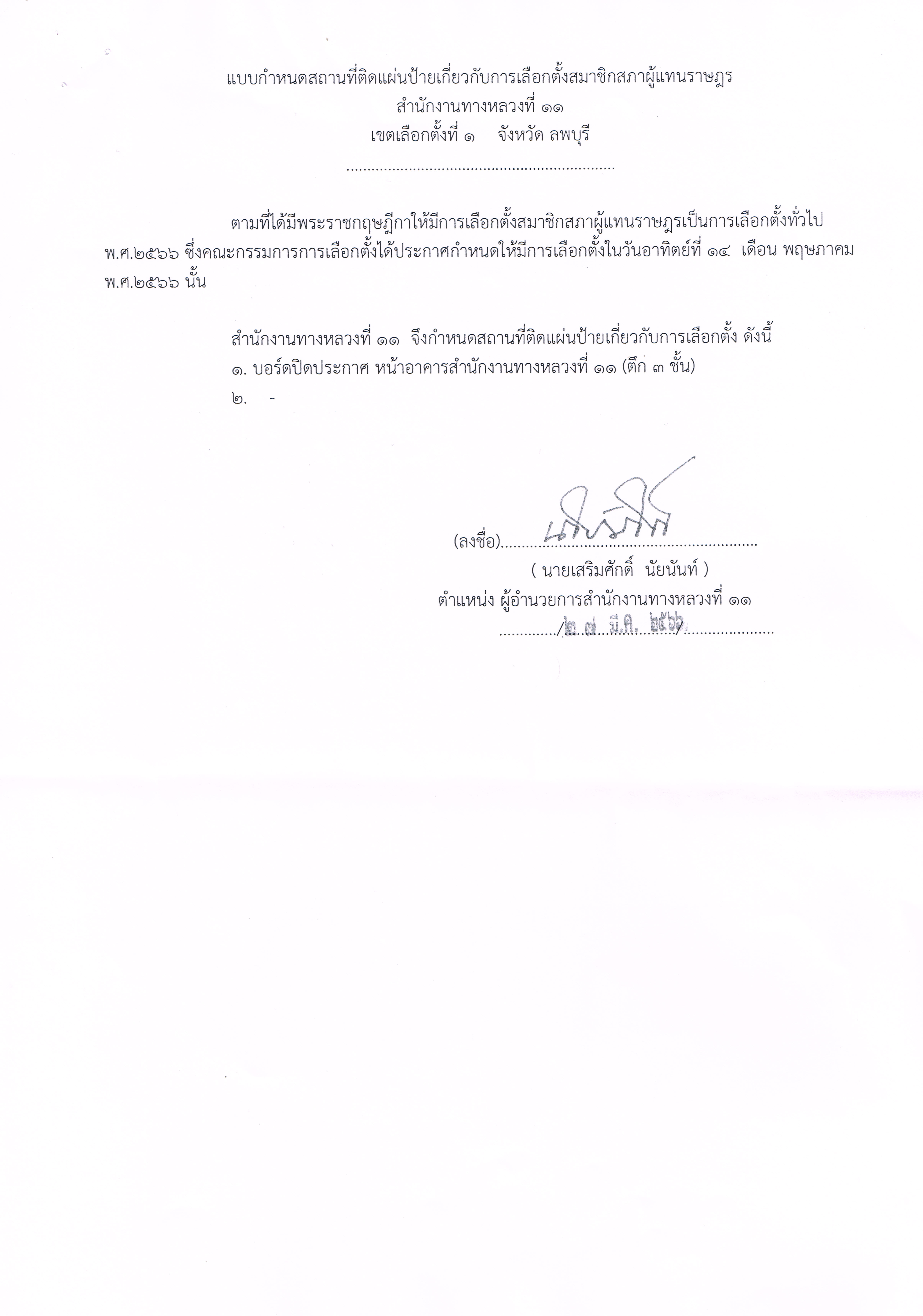 กำหนดสถานที่ หลักเกณฑ์และวิธีการปิดประกาศเกี่ยวกับการเลือกตั้งสมาชิกสภาผู้แทนราษฎร พ.ศ.2566