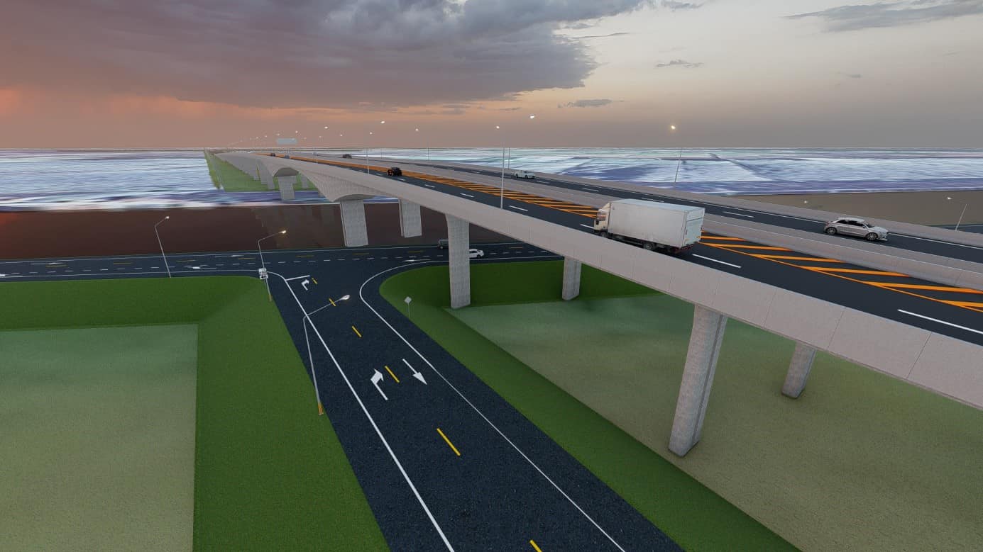 พร้อมออกแบบสะพานบกหรือสะพานยาวต่อเนื่อง ความยาวช่วงประมาณ 20-30 เมตร บริเวณตัดผ่านพื้นที่รับน้ำ 2 แห่ง 1.พื้นที่รับน้ำหลากทุ่งท่าวุ้ง และ 2.พื้นที่รับน้ำหลากทุ่งชัยนาทป่าสัก ป้องกันไม่ให้แนวเส้นทางเป็นคันกั้นน้ำและกีดขวางทางระบายน้ำ พร้อมจุดกลับรถ ระบบระบายน้ำ และระบบไฟฟ้าส่องสว่าง